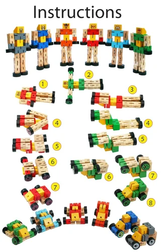 1. Assemble the wooden pieces to form a robot.